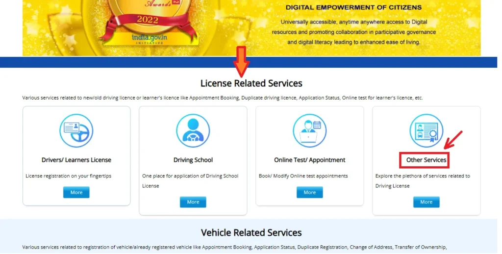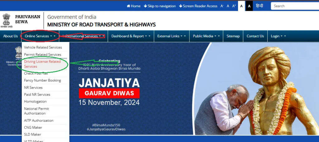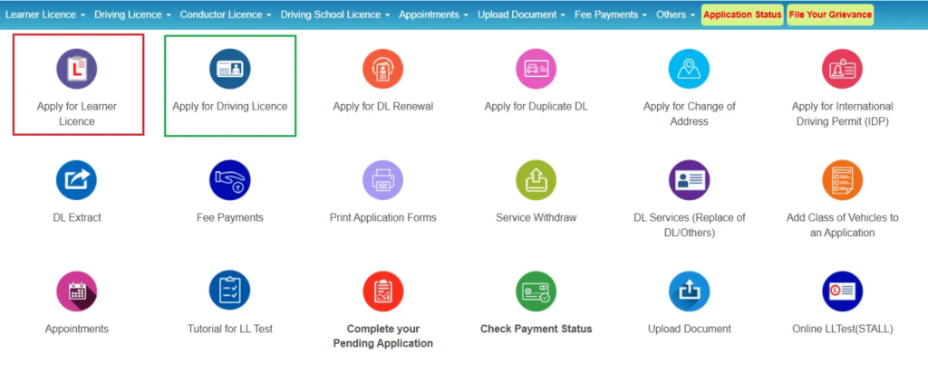 - Online Services → Driving Licence Related Services पर क्लिक करें।