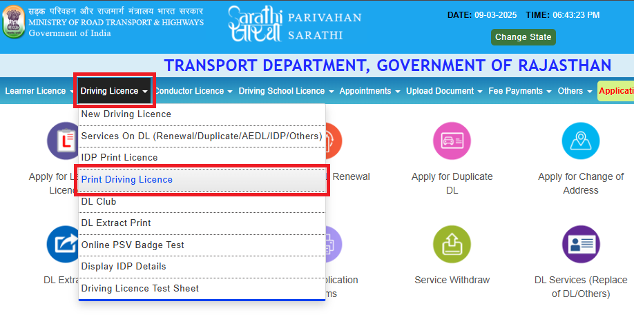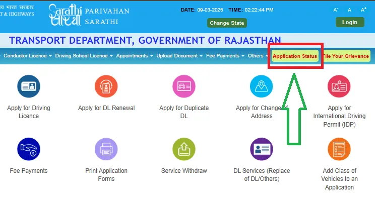 Sarthi Parivahan Sewa एक ऑनलाइन सेवा पोर्टल है जहाँ निम्न सेवाएं उपलब्ध हैं: