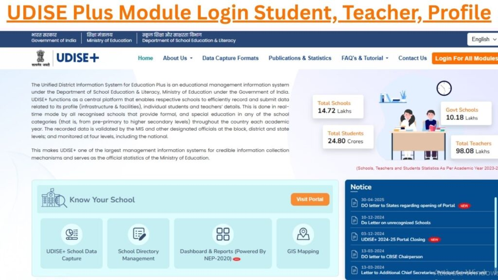 UDISE Plus Login – Student, Teacher और School Profile Module